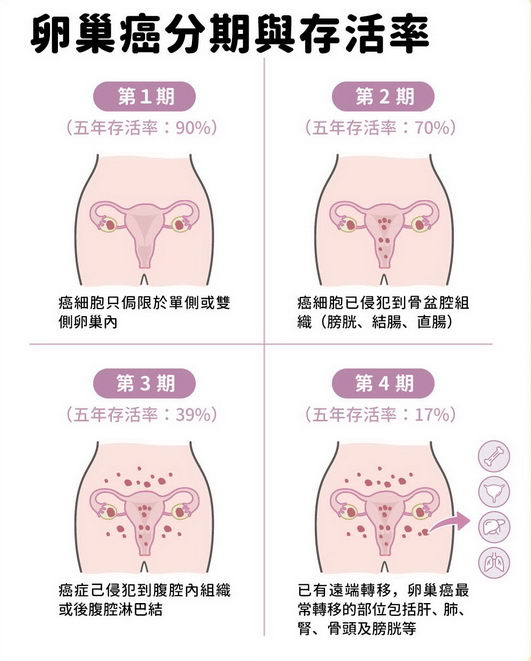 卵巢癌初期通常没有任何症状,75%的病患都是在第三期或第四期才被诊断出来。这时候症状多为上腹出现类似胃肠不适的症状。