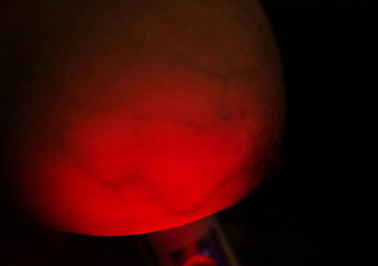 关上灯,拉上窗帘,形成黑暗的房间,对照镜子最佳,打开红光乳腺检测仪,使用650nm波长的红光照射,肉眼可见整个乳房状态,乳房的内部情况一目了然,哪里有阴影,哪里有血管组织混乱不清,都能看见。准确率高达95%。