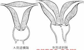 可能因两侧副中肾管尾端与尿生殖窦相接处未被贯通所致。阴道横隔多位于阴道上中1/3交界处,也有发生在其他部位者。完全性横隔少见可致阴道闭锁;通常在隔中央或侧方有小孔,其大小不一,影响阴道液与经血排放。
