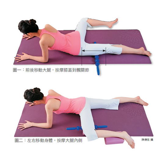 下腹部的柔软和大腿内侧的足三阴和臀部的膀胱经穴位有关,多按摩这三个部位能放松下腹部的压力。(见图一、图二)