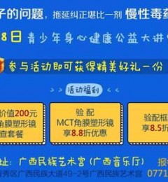 为了响应国家关于青少年近视防控工作的开展,普及青少年近视防控知识,南宁爱尔“2018年青少年身心健康公益大讲堂”将于3月18日在广西民族艺术宫(广西音乐厅)举办。届时,将邀请在眼科领域有较深造诣的刘伟民教授讲解青少年近视的防控知识。...【浏览全文】