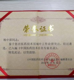 荣誉!中亚医院杨中原主任入编《中国医药技术百名专家名录》
