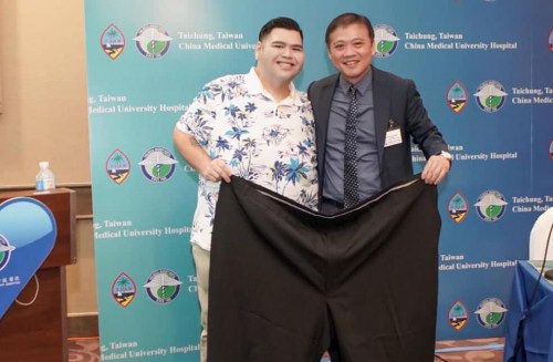 但是现在,一切都在改变。当这位2年前还肥胖缠身的胖小伙来再度来到亚示台湾中心体检,连当初接待护理的工作人员人员都不敢辨认这与以前是同一个人。在主治大夫黄致锟教授面前,Joseph Lujan高兴的像个孩子。更骄傲地拿出过去所穿的特大号裤子来和现今的体态相比,身形足足少了一半之多!他说:他要努力的瘦到一百公斤以下!