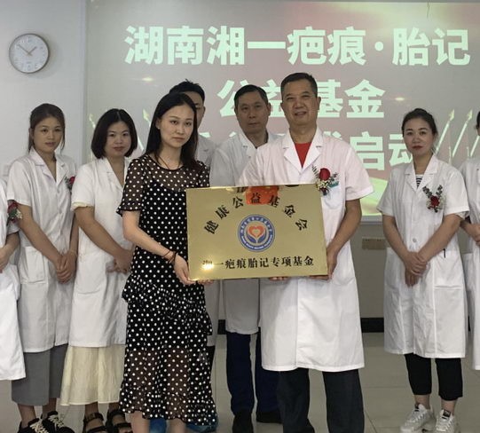 在湖南省健康公益基金会的大力支持下,全国农村损容性皮肤病专项帮扶计划在我院开展,旨在“以爱赋能,善行天下”传递人道、博爱精神,呼吁全社会关注和关心胎记、疤痕等损容性皮肤病患者,通过治疗费减免、名医亲诊、技术支持等方式,切实解决贫困患者、特困患者、重症患者,以及在校学生等弱势群体、困难家庭实施医疗救助,帮助损容性皮肤病患者得到及时规范治疗。