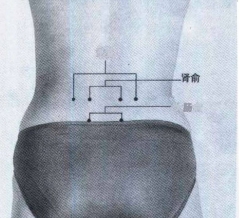 肾俞位于肚脐正后方点起,向左右各两指处外侧。志室则从肾俞再向外两指。大肠俞位于肾俞下3指处,与展骨同高。将仁丹贴于此6个穴位上,并在疼痛处和压痛处也贴上仁丹,效果更好。
