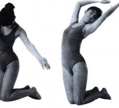 尤其是以预防及改善腰痛为目的而做体操时,在转动上体之前,作为准备运动,应先进行“扭腰”。膝部跪在地板上,上体慢慢向左转,休息一会儿,再慢慢向右转,如此反复3~4次。不要向后转,只要将上体向左右方向转即可。完成之后再转上体。膝部支地两腕前伸,以腰为中心做360度转体。将双臂像两根表针一样大幅度地转动。开始时,在上方画小圆,身体适应之后,就像画大的椭圓一样转动身体,这是此动作的诀窍。向左、向右交替进行5~6次即可。
