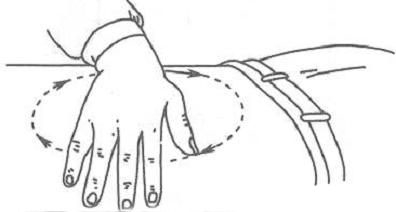1)屈肘、松腕。以肘关节为中心,带动指、掌作缓和协调的环旋抚摸。