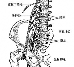 腰椎间盘突出庞产生的临床症状最主要的是神经受损,累及腰骶神经丛,牵扯的神经有:股神经、闭孔神经、坐骨神经,所产生的症状都是以上神经支配区的运动及感觉障碍。 股神经来自腰2-腰4脊神经,是腰丛各支神经中最粗的,在髂凹内行走于腰大肌与髂腰肌之间,发出肌支分布于腰大肌和髂腰肌,通过腹股沟韧带到大腿后,立即分为3支,并支配其分配区的肌肉及皮肤。①股四头肌肌支。②隐神经,分布于膑下方,小肠前内侧面至足的内侧缘。②前皮支,分布于大腿前面。
