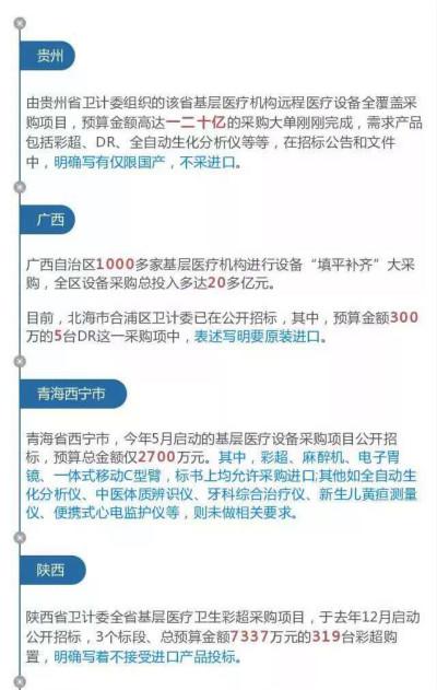 在医疗器械各领域中,放射影像领域是一个巨大的市场,并以高增速持续增长,权威机构预测,影像设备全球市场规模到2023年将达到490亿美元。在中国,影像设备一直存在巨大的需求,尤其是近年来,伴随着分级诊疗制度的落地,基层医疗机构迎来建设高峰,二级医院不断扩大服务能力,强效刺激着影像设备市场需求。近两三年,多个省份进行了集中招标,招标设备涉及DR、彩超、生化分析仪等多类产品,其中,DR动辄数百台,乃至上千台,单笔金额达数千万元。面对如此巨大的市场与需求,具备中国医疗器械领域第一品牌实力的迈瑞医疗横插一脚,也在情理之中了。