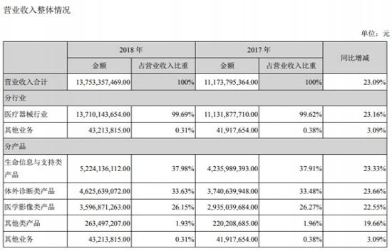迈瑞医疗的主营业务在生命信息与支持、体外诊断、医学影像三大领域,其中医学影像领域以超声业务为主体,放射影像业务的贡献几乎可以不计,多年来没有推出新产品,技术储备更是一个大大的疑问号。那为什么迈瑞还会与近年来在放射影像领域风头正盛的联影产生冲突呢?归根结底,还是巨大的利益诱使。
