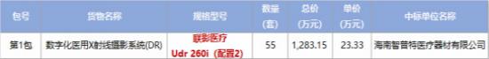 数日前,官方正式公布了海南55台DR批量标中标结果更改公告,公告显示,经原评标委员会重新审查,第一包(55台DR)中标结果更改如下:海南智普特医疗器械有限公司用联影医疗的Udr 260i(配置2)中标。近一个月前发布的中标结果公告中,55台DR的中标者为重庆怡亚通医药有限公司代理的迈瑞DigiEye280。