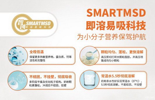 作为“消化吸收系”婴配粉开创者的喜安智,专注于宝宝娇嫩肠胃更好呵护,不断在配方上精进,从国内较早添加OPO结构脂、乳铁蛋白LF到益生菌、益生元到适度双水解蛋白质、MCT、MFGM等。技术上,为了保留更多营养活性,领先的智创SMARTMSD即溶易吸科技全程低温保驾护航,有效保留更多热敏营养素活性。同时,用高压剪切打碎大颗粒脂肪,喷散成均匀的蓬松小颗粒,让喜安智在37℃的常温水中实现5.5秒彻底溶解,不易结团、不挂壁,真正做到“溶解吸收看得见”,收获万千妈妈认可。