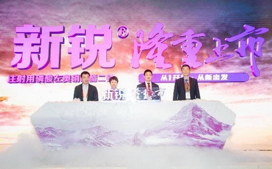 该照片为2021年10月,扬子江药业集团举办首个化学1类新药——新锐®注射用磷酸左奥硝唑脂二钠发布会。