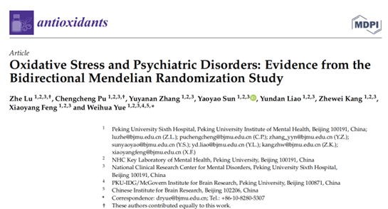 Lu Z, Pu C, Zhang Y, et al. Oxidative stress and psychiatric disorders: evidence from the bidirectional mendelian randomization study[J]. Antioxidants, 2022, 11(7): 1386.