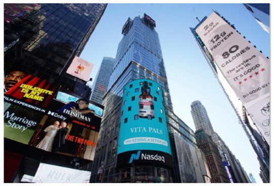 2020年,韦达普(VITA PALS)作为一家备受瞩目的品牌,在纽约纳斯达克大屏幕上强势登陆,这一震撼的画面吸引了来自全世界的目光。纳斯达克作为被誉为“世界的十字路口”的金融中心,见证了无数企业的辉煌登陆,而韦达普的出现,无疑为这个世界级舞台增添了一抹亮色。
