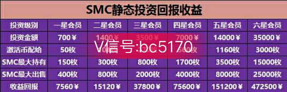 原点位升级,不分时间和次数,直到升到最高级别;动态奖金不扣任何费用;配比的SMC的比例,在升级后全部补到最高点,让会员没有任何损失;强制回本