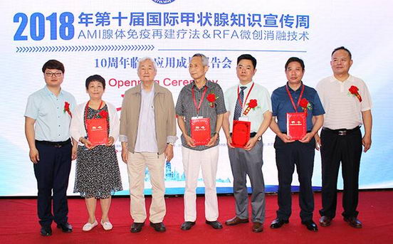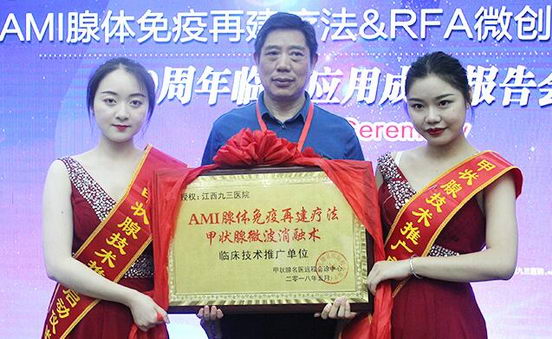 与此同时,原国家卫生部部长孙隆椿授予我院——AMI腺体免疫再建疗法/甲状腺微波消融术临床技术推广单位牌匾。