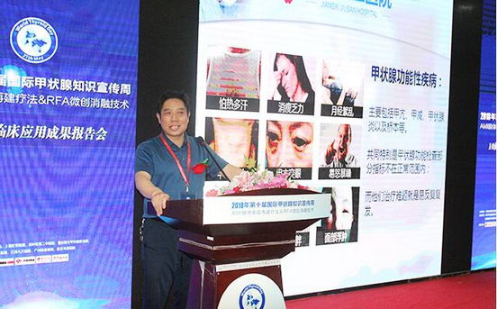 为了促进和加强甲状腺前沿诊疗技术在全国范围内的全面推广,增进国内甲状腺巨擘关于甲状腺学术做前沿交流,了解甲状腺领域的最新进展。2018年5月27日,由中国老教授协会医专委员会主办的“AMI腺体免疫再建疗法&微波消融10周年临床应用成果报告会”在中国·南京隆重举行,我院作为华东地区甲状腺诊疗先进单位,曾令豪主任受邀参加此次盛会。