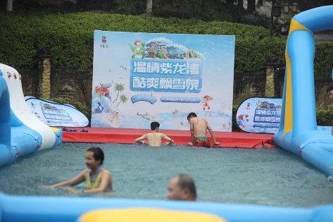 紫龙湾飘雪温泉节暨亲子水上嘉年华整合了湖南紫龙湾温泉度假有限公司的景点、酒店、餐饮等众多旅游资源,联合相关旅游机构共同推出多种旅游服务,同时为旅游产品附以文化价值,推动湖湘地区旅游差异化和产业链的发展与延伸。紫龙湾飘雪温泉节暨亲子水上嘉年华将从7月一直持续到今年9月,为大家带来一整夏的清凉体验。