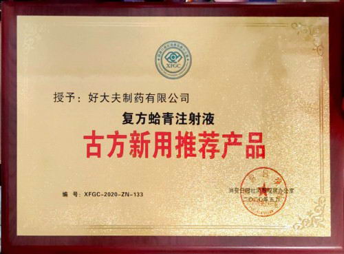 好大夫制药有限公司以 “复方蛤青注射液”作为品牌产品参与评选,经过层层选拔、专家评选,最终荣获“增强免疫力推荐产品”、“古方新用推荐产品”两大奖项,其传承和创新研究中医药经典古方《旱蛤蟆散》的真实案例,获得众多业内人士、临床专家的一致认可,在发挥中医药特色优势中具有特殊的贡献意义,为治疗肺部基础疾病、慢性肺疾病、哮喘等有着显著疗效,且安全、无副作用,经临床观察发现用于蛤青注射液治疗的患者,能显著提高机体免疫力,明显降低疾病复发。