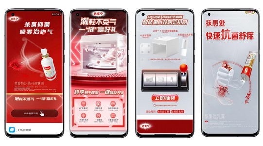 除了小部件之外,作为终端厂商的小米具有多矩阵的传播能力,能够助力达克宁构建品牌认知。一方面,大数据赋能让小米DMP能精准抓取品牌想要触达的“病患”及“潜在病患”的标签群体,另一方面,小米移动端系统级的应用矩阵助力达克宁多渠道、多形态触发目标用户。通过移动端APP开屏H5和信息流双端投放,全面聚合用户碎片化时间,在释放品牌信息的同时引导用户点击进入达克宁电商平台,构筑品牌在个人场景下的高效转化。