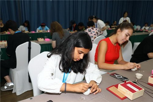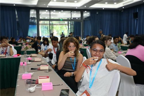 茶文化起源地为中国。中国是茶的故乡,中国饮茶,据说始于神农时代,少说也有4700多年了。茶的功效数不胜数,但茶泡的好不好喝,品茶的礼仪是什么......关于茶,这些点点滴滴都是非常讲究门道的。活动由茶艺表演开场,通过各种茶叶冲泡技艺的形象演示,科学地、生活化地、艺术地展示泡饮过程,使来自各个国家的营员们在精心营造的优雅环境氛围中,即便是炎炎夏日,也能得到片刻的宁静、美的享受和情操的熏陶,瞬间融入中式美学的禅意氛围中。