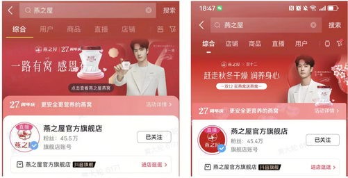 另外,燕之屋在抖音平台设置全年度品牌专区广告,更在搜索页面运用品牌视觉搭配小飞盒创新样式,引流到客户直播间,借助创新互动样式的组合玩法,提升了品牌曝光和引流效率。