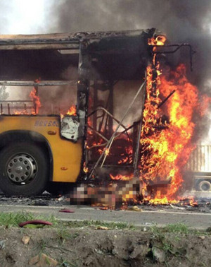 烟台公交疑遭纵火 嫌疑人为50岁左右男性