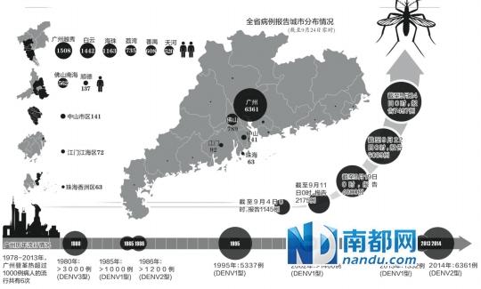 继广州出现两例死亡病例后,佛山昨天出现首例登革热死亡病例。而从9月22日0时到24日0时,全省报告登革热确诊病例两天内再增1408例,其中广州报告6361例病例,已经超过1978年有统计以来的历史最高年份纪录。...【浏览全文】