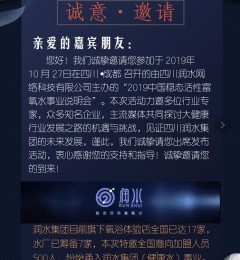 2019年10月27日,是一个值得润水科技公司乃至中国饮用水业特别纪念的日子:这一天,润水健康科技全国启动仪式暨招商大会即将在成都家园国际酒店召开,开创了"稳态活性富氧水"新时代,引领"稳态活性富氧水健康饮用水"消费新时尚。...【浏览全文】