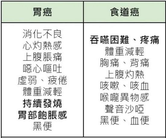临床中消化道不适症状虽然常见,但可能导致消化道癌症的前期症状较不明显,容易被民众忽略。消化道癌症包括食道、胃及十二指肠癌,其中又以胃癌与食道癌的危险性最高。