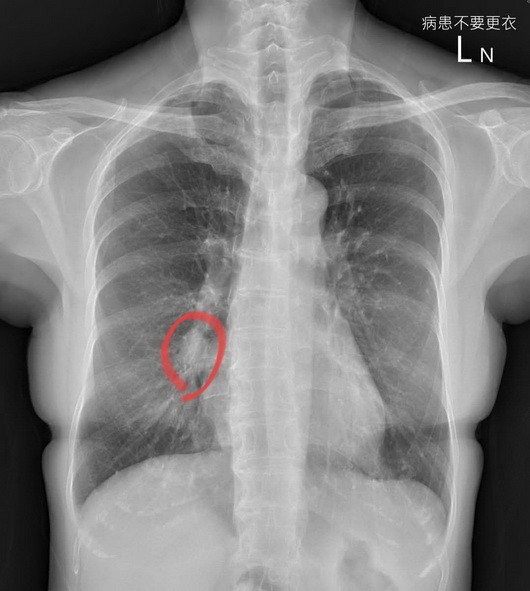 医生指出,X光一照看完觉得有问题,“让大家找看看在哪里”;安排后续的计算机断层CT检查,发现是3公分的肺癌,大概第二期或三期。