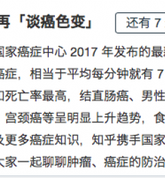 2017 年 12 月 18 日,知乎联合国家卫生计生委官方知乎帐号 “健康中国” ,共同发起了一场线上科普沙龙——“不再‘谈癌色变’”主题圆桌。此次圆桌邀请 11 位肿瘤学界的知名专家学者作为特别嘉宾,为大众带来前沿权威的肿瘤、癌症预防和治疗等科普知识。...【浏览全文】