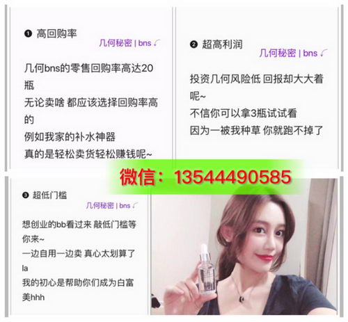 微商平台依然火爆,几乎每天都有新加入微商行业的新的代理,今年最具前景的微商项目有哪些呢?护肤品市场又有哪些优势的品牌呢?几何秘密bns玻尿酸原液在全国各地遍地开花,现在要代理几何秘密bns玻尿酸原液还来的及吗?怎样成为它的代理呢?