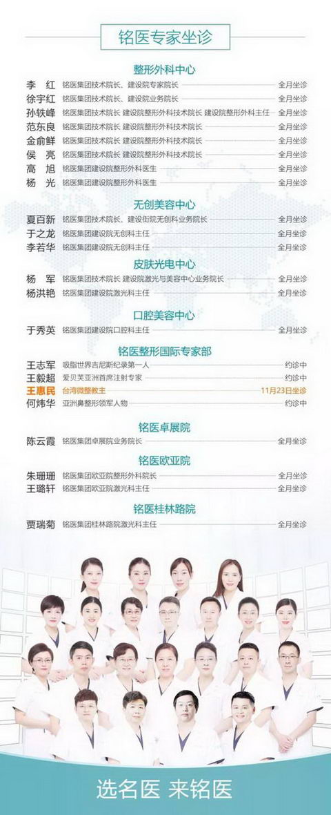 38年来,铭医整形始终倡导安全塑美,用专业人做专业事,汇集了大批专家教授,他们大多数都是重点医科大学的留学生、硕士生、博士,甚至是硕士生/博士生导师,经历了多年的国际学术交流与学习,积累了数以万计的临床实践经验,铭医企业以及旗下专家个人都先后获得过多次优秀技术科技进步奖,并拥有多项核心发明专利技术,不断升级已有项目,引进新产品,研发新技术。