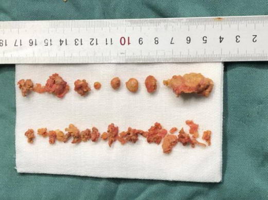 韦教授帮求美者取出得残存于乳房内长达10年之久的钙化了的脂肪块