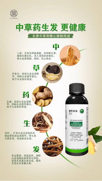 唤醒,恢复活性。数十种中草药调配而成,经头皮渗透进毛孔,修护瘫痪毛囊,为新发发根提供沃土。