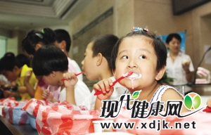 2. 教会儿童怎样拿牙刷。可以先温水代替,不用牙膏,只教会如何刷牙的方法,当孩子能正确掌握后,再正式刷牙。