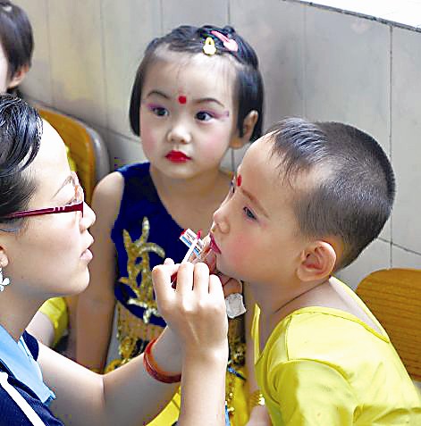 重庆某幼儿园的几个孩子,在参加文艺活动后满脸长出红斑。医生检查发现,她们是因为使用了成人化妆品而受到刺激。要知道成人化妆品用在孩子身上可能成为有毒品,家长切勿用自己的化妆品打扮孩子。