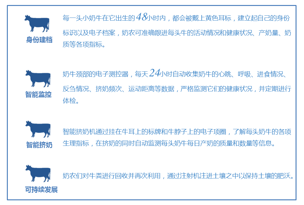 美素佳儿相信,好牛才能产好奶,因此在奶牛的养殖过程中,美素佳儿采用了一系列高科技手段,从饲养、管理,到挤奶,每一个环节都体现出科学和可持续发展的养殖理念: