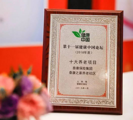 1月8日,第十一届健康中国(2018年度)论坛在北京举行,泰康保险集团旗下的泰康之家医养社区凭借其高品质养老的突出成果,力获“健康中国(2018)·十大养老项目”殊荣。