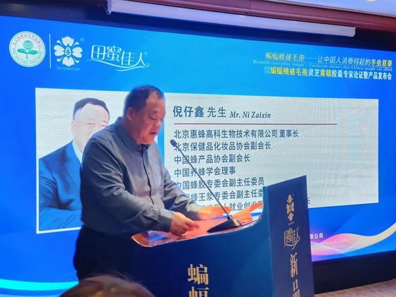 专家论证会论证的产品是由北京惠蜂高科生物技术有限公司提供的田蜜佳人易德堂牌“蝙蝠蛾被毛孢黄精灵芝胶囊”。该产品是北京惠蜂与中国中医科学院采用中医的君臣佐使配伍理论,经反复临床试验,把科学家们在试验室里研制和生产出来的“蝙蝠蛾被毛孢菌丝体粉”,通过中医医学技术和标准化,实现“蝙蝠蛾被毛孢菌丝体粉”产品的量产,真正把科学家的科研成果转化为市场价值,有利于千千万万老百姓消费,有利于更多科研成果的转化。