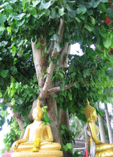 佛陀对阿难说:“世间有三种器物应受礼拜——佛骨舍利,佛像和菩提树。礼拜菩提树吧,这和礼拜如来功德一样大,因为它帮助我圆证佛果。”留学佛子释本性说:“佛门中,菩提树是圣树。因为,佛陀是在菩提树下成道的,见菩提树如见佛。"