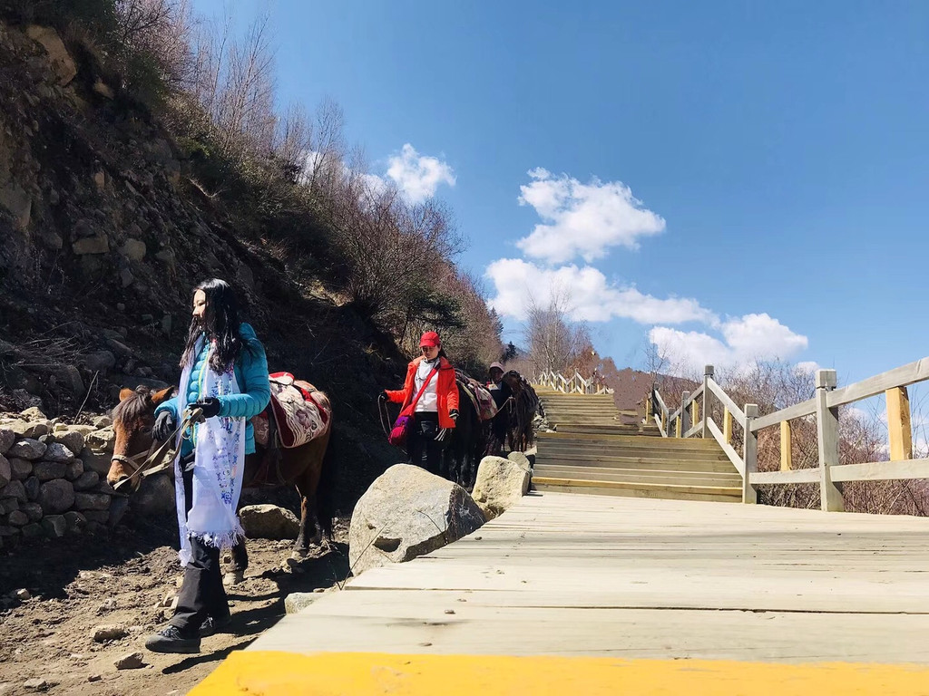 春季(4月—5月)来得较晚,这个时间稻城亚丁沿途都是满山遍野的鲜花,兰天白云下,帐蓬、牦牛、马、羊满山遍野,雪山冰峰直刺天穹,桑烟缭绕天地之间,神山在这个季节显得更加壮观和明朗。
