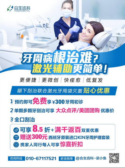 合生口腔(合生齿科)【龈下刮治联合激光牙周袋灭菌】贴心优惠,折扣够给力!需要的小伙伴欢迎咨询就诊哦
