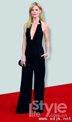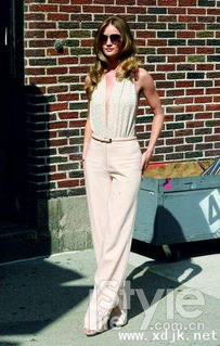 虽然没有任何配饰,Kaley也气场十足!V领与富有垂感的裤管配合完美,而Pose与态度绝对是成功的关键!
