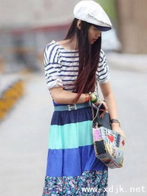 李晖的这个整体造型充满让人着迷的度假风情,条纹T恤和拼接图案长裙轻易打造出活力十足又不失韵律感的风范,贝雷帽的搭配更像是独特的个性化表达。