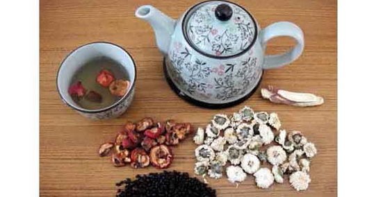 材料:山楂2钱、白菊花1钱、炒决明子3钱、甘草0.5钱