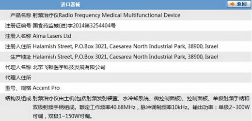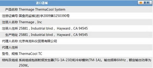 2009年ThermageCool TC被CFDA批准进入中国市场,2015年Thermage CPT(黄金头)也经CFDA批准进入,新一代FXL目前还未经过CFDA新的审批。热拉提2014年经CFDA认证进入中国大陆,后续未有改动。