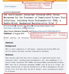 美国IDSA:头孢曲松钠舒巴坦钠VS美罗培南治疗复杂尿路感染,包括急性肾盂肾炎的试验